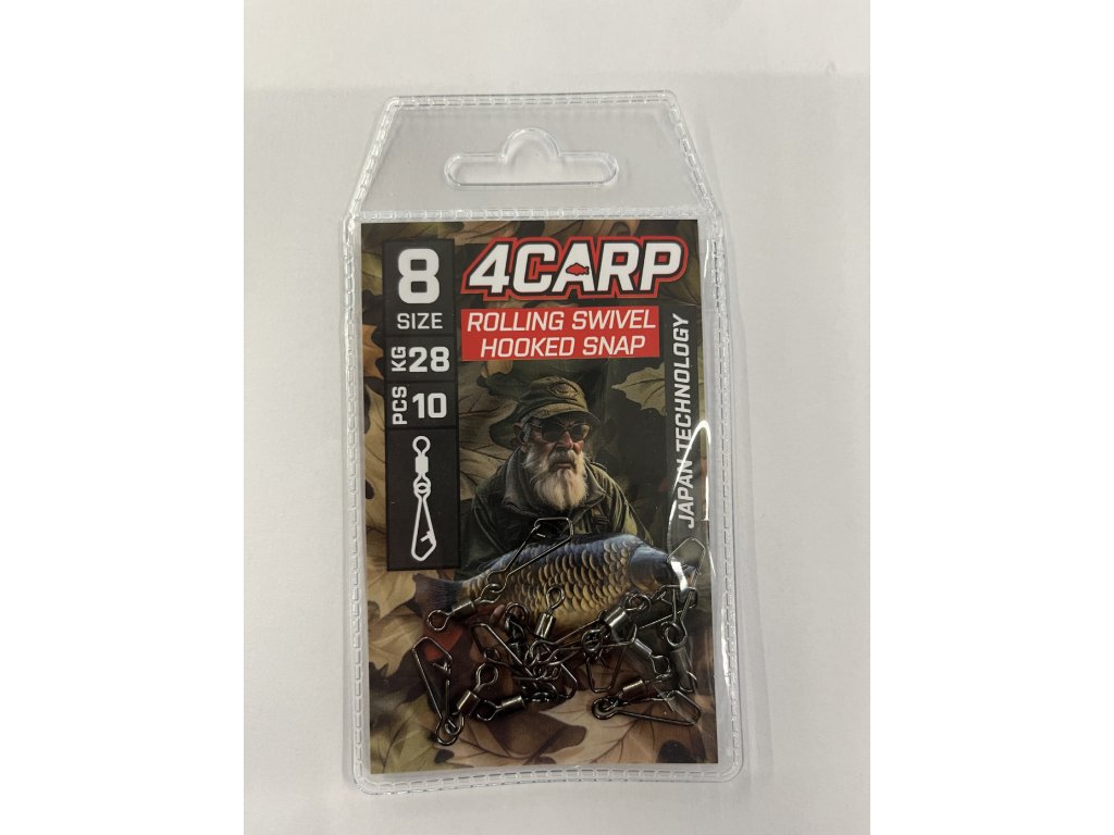 4Carp Rolling Swivel & Hooked Snap je klasický pevnostní obratlík s karabinou určený pro rychlou a snadnou výměnu všeho co do něho zavěsíte