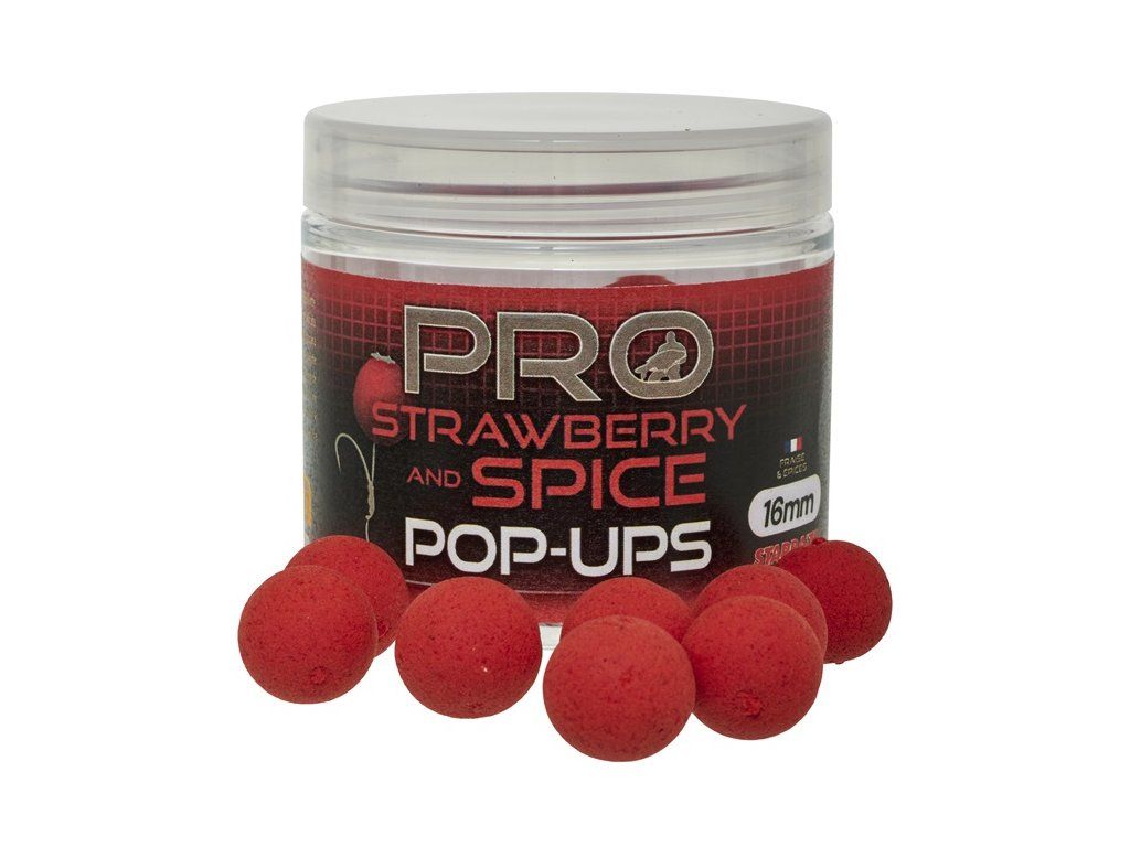 Plovoucí boilies POP-UP se silným a intenzivním aroma jahody a směsi koření. Výrazná barva láká kapry i z velké vzdálenosti. Je plné přírodních látek, obsahuje výběr mouček, minerálů i koření. Výborné plovoucí vlastnosti.