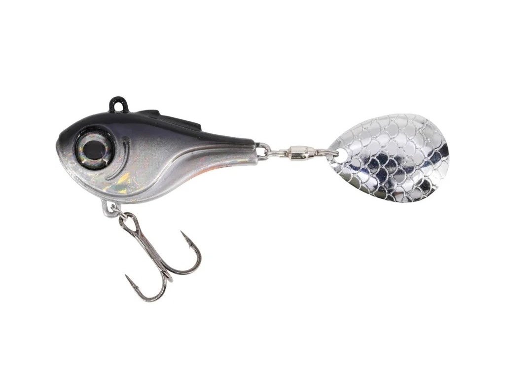 Kompaktní tělíčko s velkým 3D okem vytváří výrazný signál kořisti, zatímco atraktivní barevné provedení upoutá další pozornost. Třpytivý spinnerový list s texturou šupin vytváří silné odrazy světla a vibrace, které lákají i méně aktivní dravce.