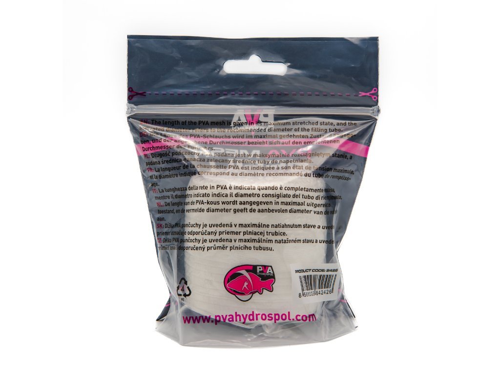 Náhradní PVA punčocha slouží k doplnění PVA materiálu na plnící tubus. Varianta 25 mm je pletená z 24 kvalitních PVA vláken.